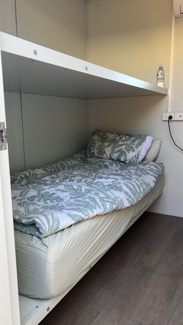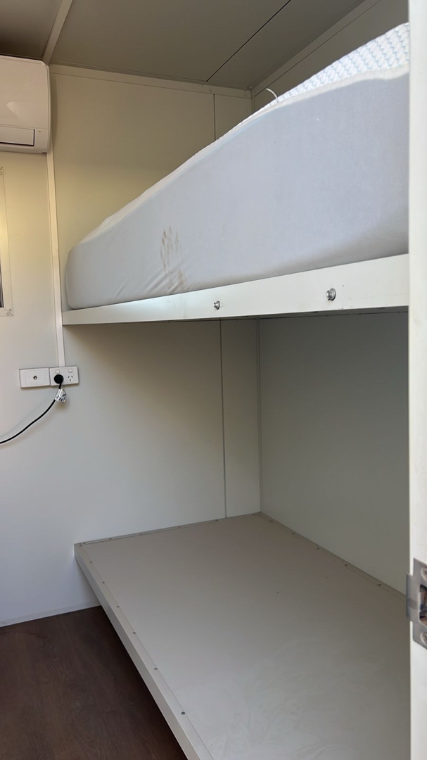 6 man sleeping unit Converted 20’ container 3 x rooms with double bunks Fridges each room Air conditioned each room Tandem axle pig trailer